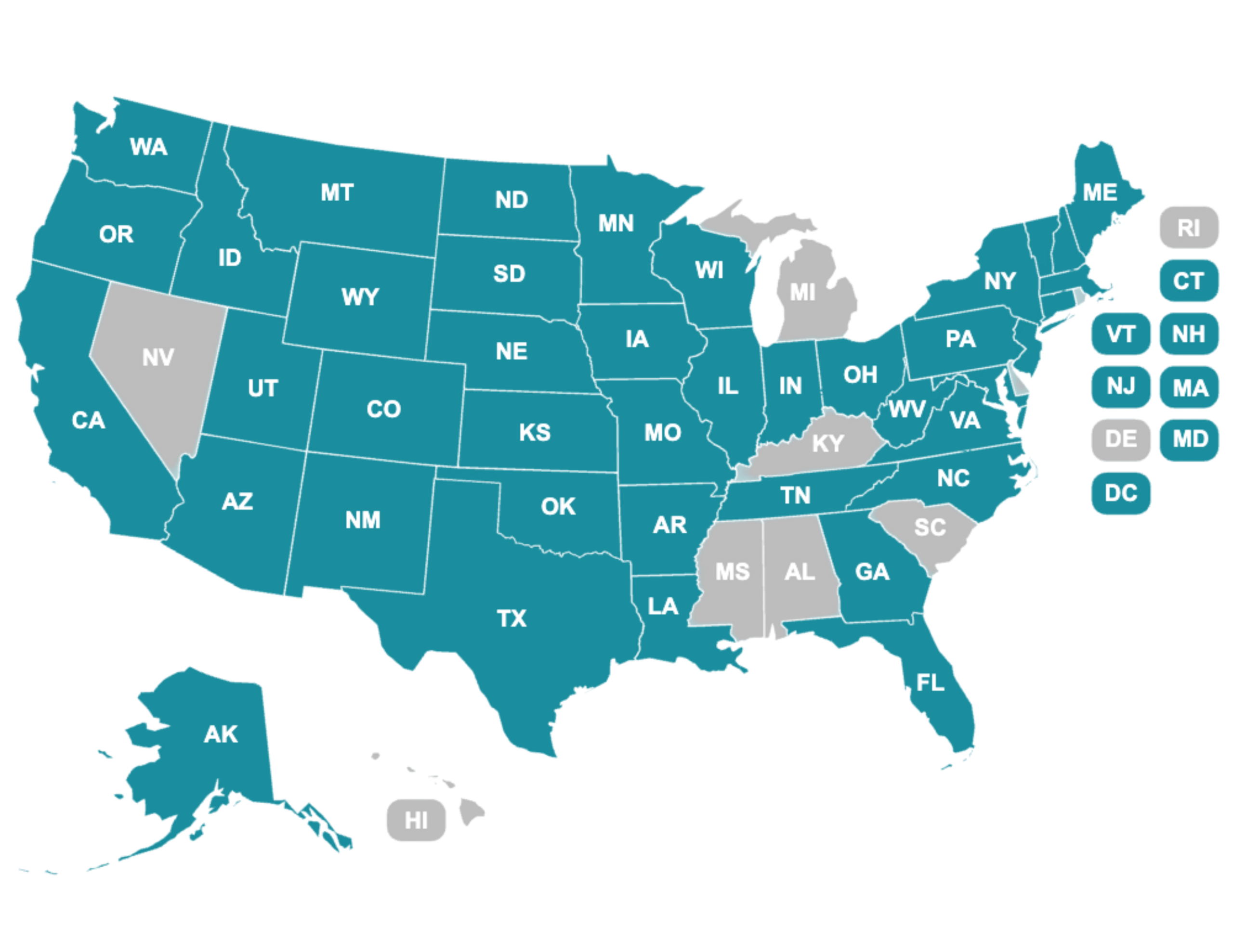 Available in the following states: Arizona*, California*, Colorado, Florida*, Idaho*, Illinois, Indiana, Iowa, Kansas*, Louisiana, Massachusetts, Minnesota, Nebraska, New Mexico, North Dakota*, Ohio, Oklahoma, Oregon*, South Dakota*, Texas, Washington*, West Virginia, Wisconsin, Wyoming*